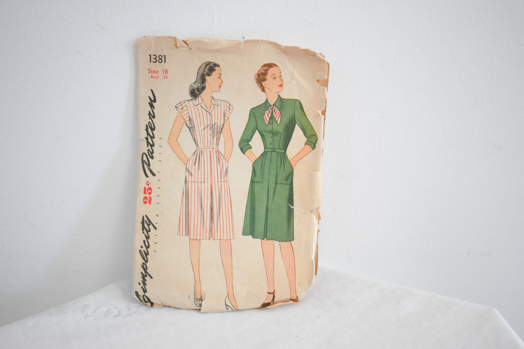 1940s Vintage Simplicity Sewing Pattern 2157 Plus Size Housecoat 40 B Vintage4me2