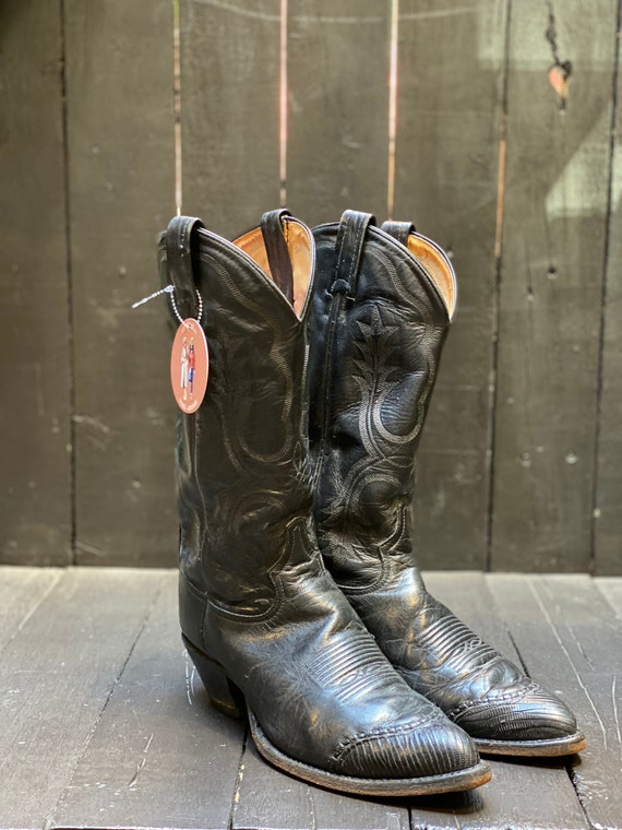 Mens 8 5 Black Cowboy Boots Round Toe Boots Tony Lama Boots Vintage Western Wear Free Usa Shipping Etsy Uk